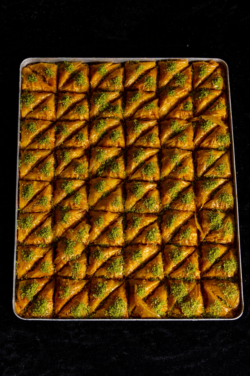 Ајмали Баклава – традиционална баклава подготвена по автентичен рецепт, со тенки кори, богат фил од јаткасти плодови и совршено избалансиран шербет. Еден плех содржи 96 парчиња, идеални за слави, настани и поголеми прослави.
